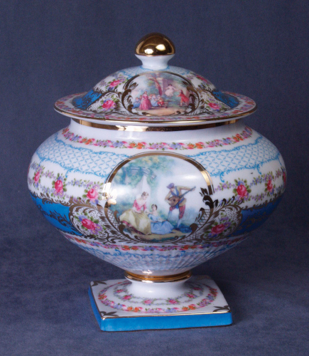 Porcelain Jar w/ Stand- Painted Romatic Scene
